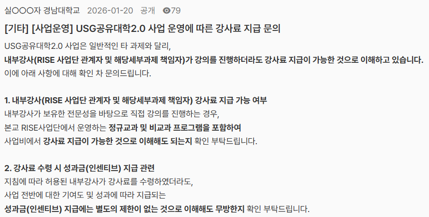 [기타] [사업운영] 공유대학2.0 강사료 지급 문의(사업단 관계자)