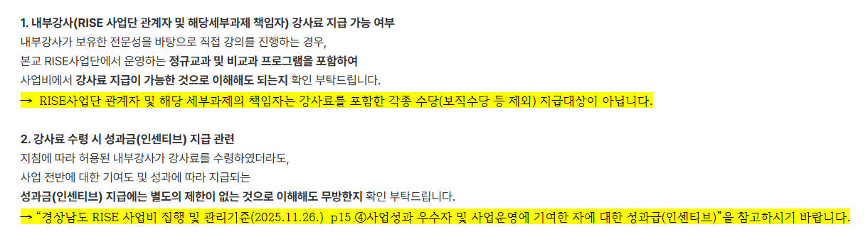 단, 세부과제 책임자의 경우 <담당하고 있는 세부과제>가 아니면 강사료 지급이 가능하다고 알고 있습니다.